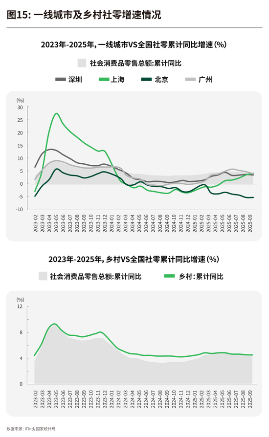 个人支出的变化来看,一个显著变化是个人弹性支出压缩的背景下,居民主要压缩的是功能性可选、中产身份标签方面的消费。