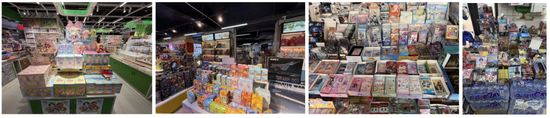 以IP商品作为观察窗口,根据2025年田野走访,我们在当地学校附近的文具店、小卖部、书城等渠道,看到IP类产品的货架占有率较高,并且均被放置在靠近门口的主要柜台。除了个别定价较低的品牌化商品外(如某品牌定价小于10元的卡牌),更多是无版权商品。